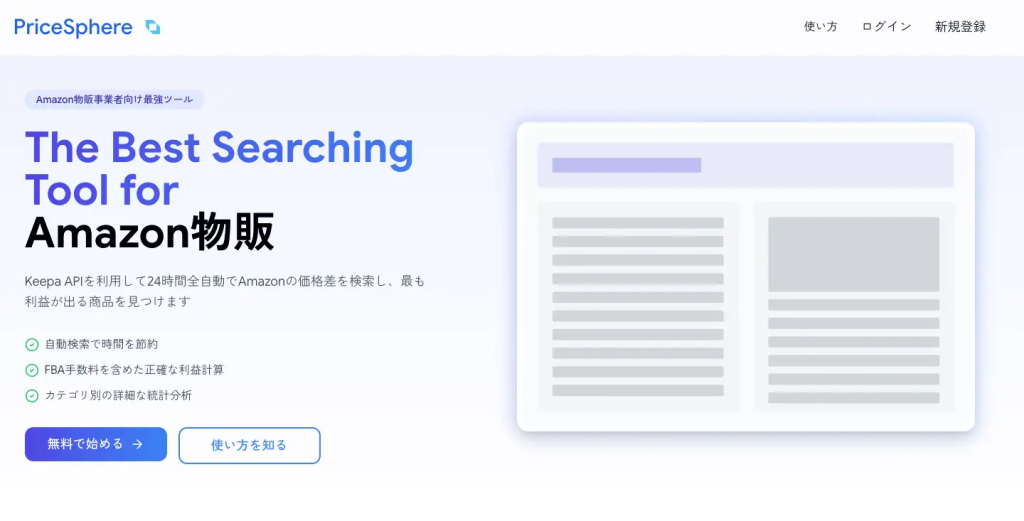 合同会社SamuraiTrade(本社・東京都渋谷区、代表社員・安部健介氏)は5日、Amazonの国内外価格差をもとに利益が見込める商品を自動で抽出する物販支援ツール「PriceSphere(プライススフィア)」を正式に公開した。副業や越境ECを行う個人・中小物販事業者を対象に、商品選定から利益計算までを一元的に支援するWebアプリケーションとなっている。