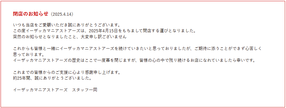 その後はネット販売に経営資源を集中。2023年9月期までに全実店舗を閉鎖し、若手社員を中心としたSNS広告やインフルエンサーとのコラボレーションを推進するなど、売り上げ回復を図っていた。だが、円安基調による仕入れコストの上昇、さらにはコロナ禍対応で受けた融資の返済負担が重くのしかかり、資金繰りが限界に達したことで、事業継続を断念するに至った。