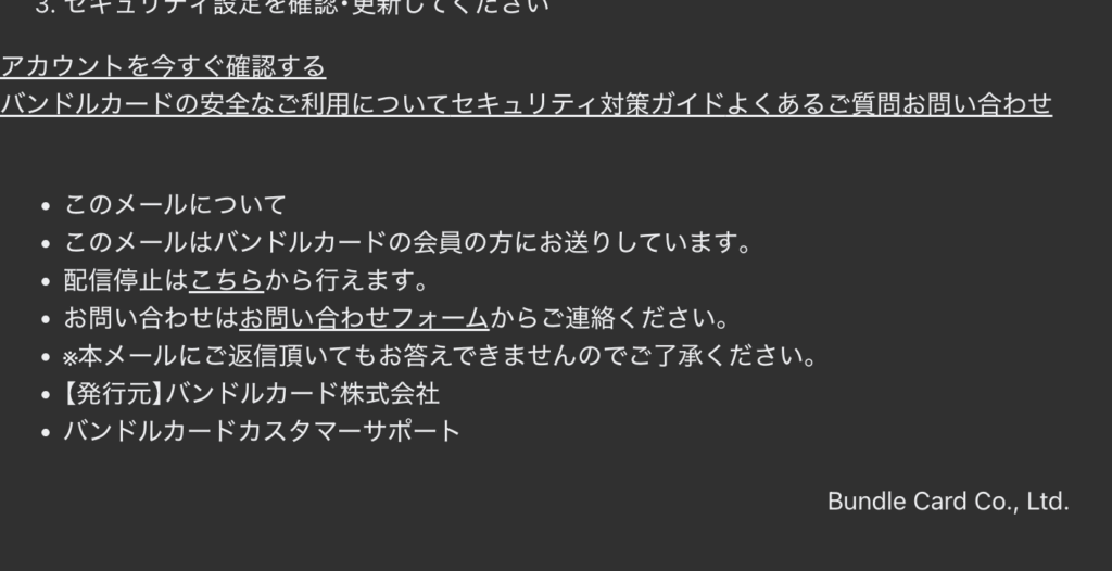 しかし、よく読むと違和感が浮かび上がる。発信者名として「バンドルカード株式会社」と記載されているが、法人登記上そのような会社は存在しない。実際にバンドルカードを運営しているのは、東京都渋谷区恵比寿に本社を構える株式会社カンム(資本金約32億9,038万円)であり、長年にわたりプリペイド式カード事業を展開している。つまり、メール自体が最初から偽装を前提にしたものであることは明らかだ。
