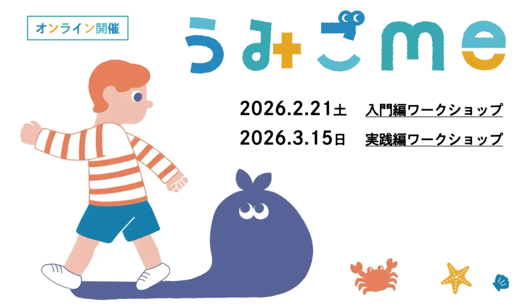 デザインを通じて社会課題の解決に取り組むissue+design(特定非営利活動法人イシュープラスデザイン、東京都)は、対話型ごみ拾いプログラム「うみごme(みぃ)」の2025年度最後となるワークショップ参加者の募集を、12月から開始した。プログラムはオンラインで実施され、2026年2月から3月にかけて入門編および実践編が開催される。