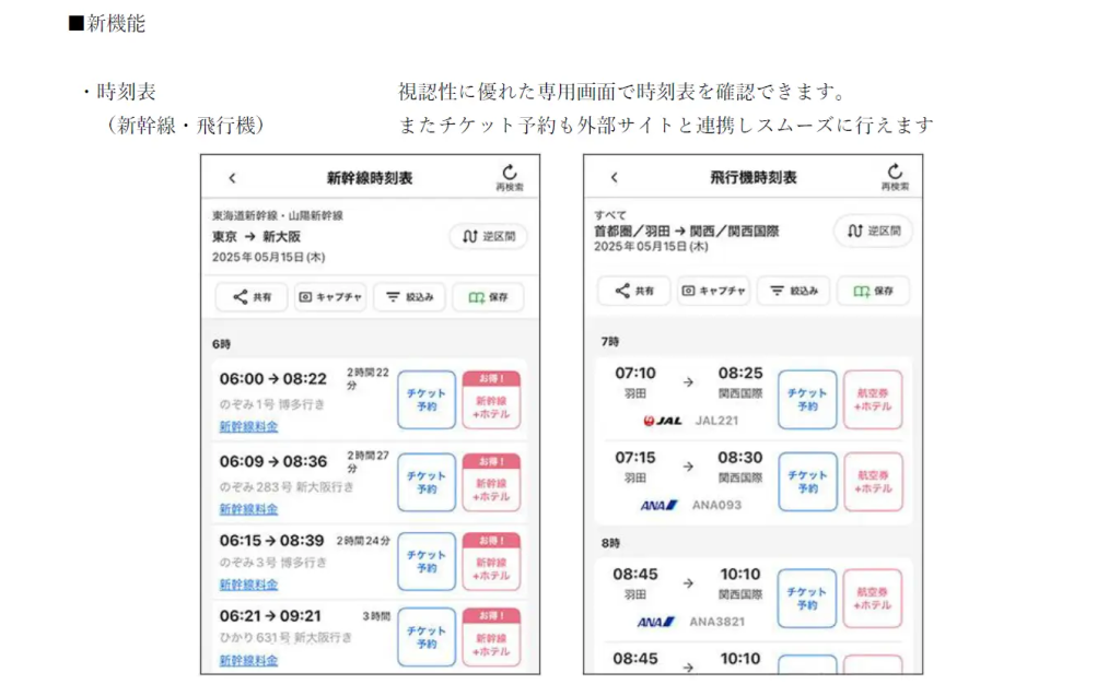 アプリはiOS版およびAndroid版が提供されており、App StoreおよびGoogle Playを通じてダウンロード可能。公共交通の複雑な乗換に不慣れな旅行者や高齢者層にとっても、安心して利用できる設計となっている。