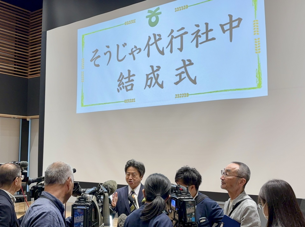高齢化などで営農継続が困難となった農家の水田を守ろうと、岡山県総社市は、新たに水稲作の代行耕作者と農地所有者を結びつける「そうじゃ代行社中」を立ち上げた。22日には市内で結成式が行われ、片岡聡一市長が「総社方式が全国に広がれば、日本の水稲作を持続可能にできる」と意気込みを語った。