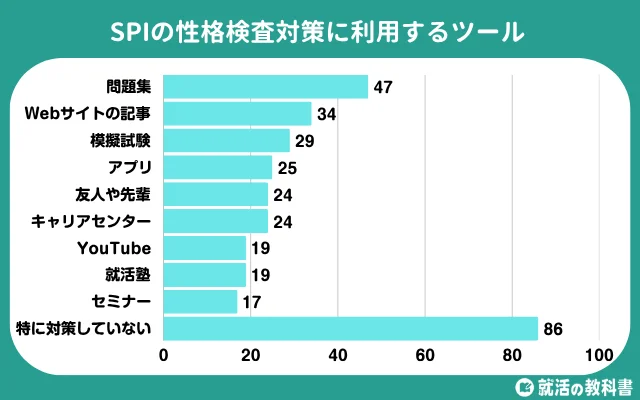 SPI性格検査の対策状況については、「特に対策していない」と回答した学生が43.0%と最も多く、約4割が無対策で受験している実態が明らかに。